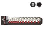 The 12PC 3/8"'DR. SPLINE SOCKET SET (8-22MM) is built for professional fastening applications where strength and precise fit are essential.